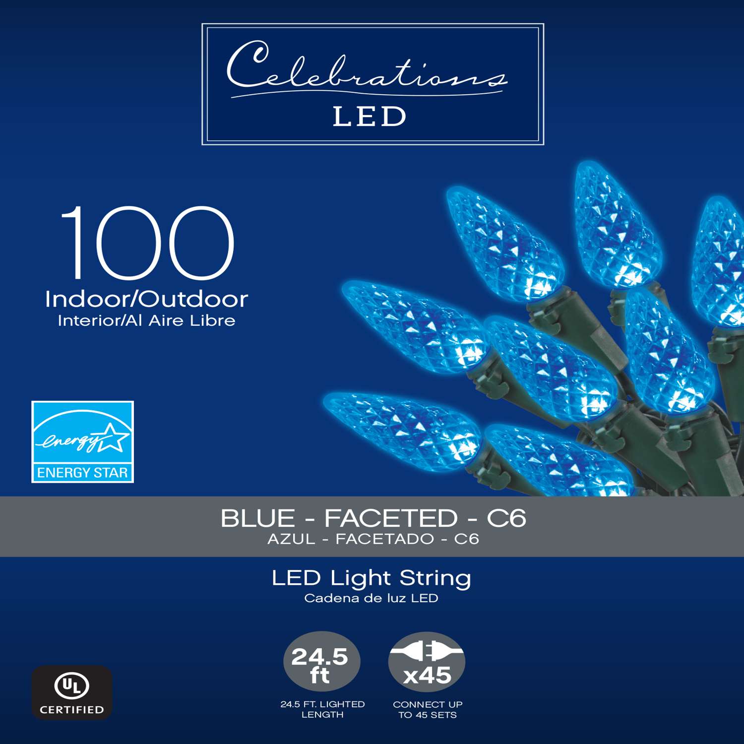 Celebrations Basic LED C6 Blue 100 ct String Christmas Lights 24.75 ft